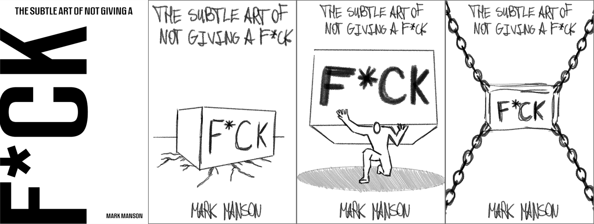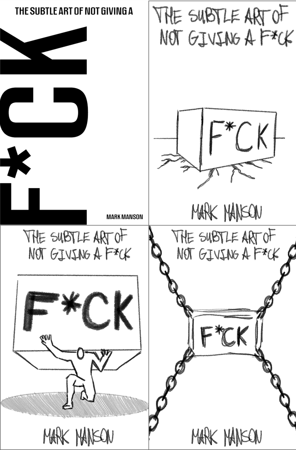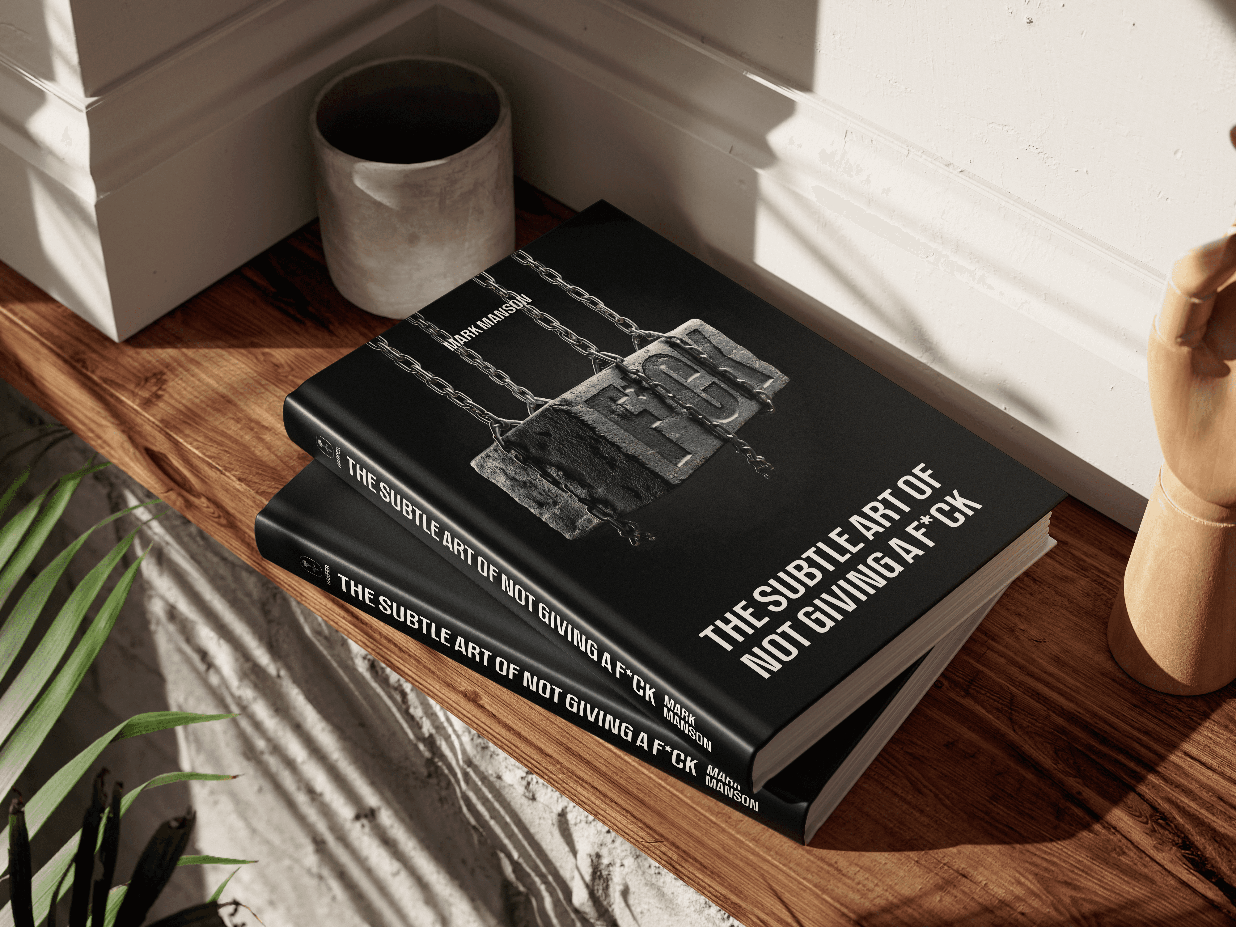 The original cover of The Subtle Art of Not Giving a F*ck relies heavily on bold typography and minimalism. While it's effective, I wanted to move beyond that and visually portray the book’s deeper themes. The challenge was to communicate emotional weight, confinement, and the burden of caring for everything through a single, striking image that feels symbolic yet instantly understandable.