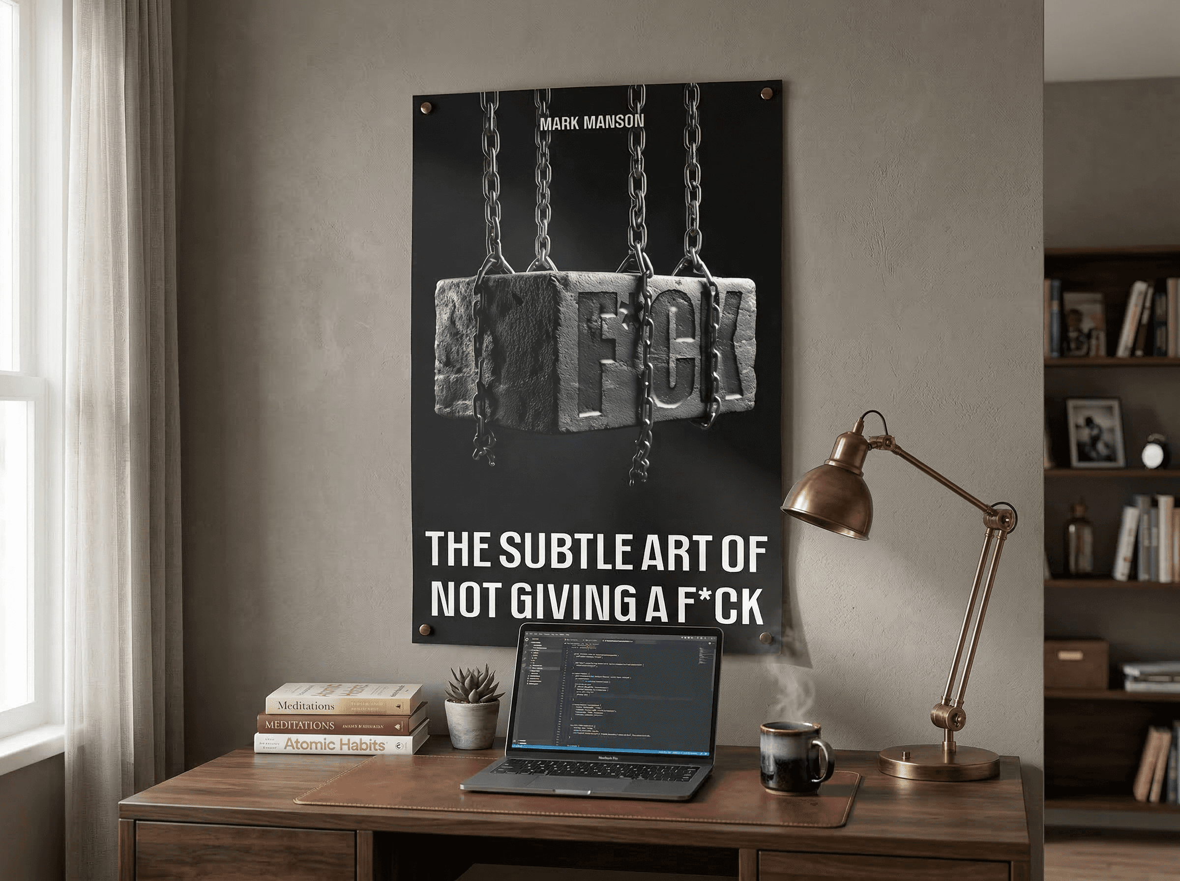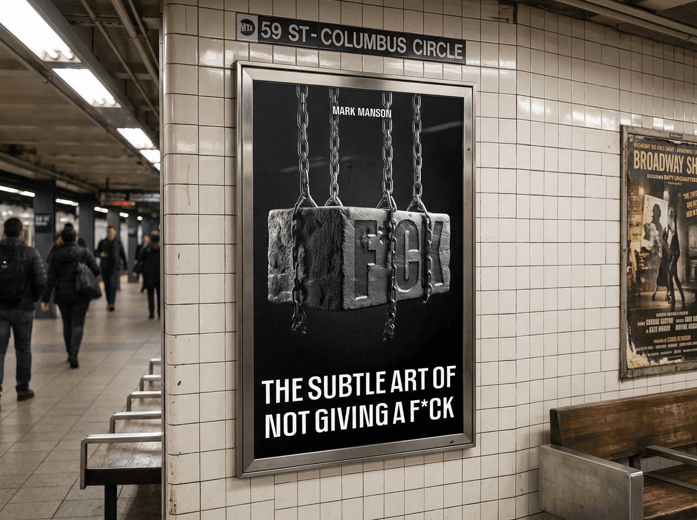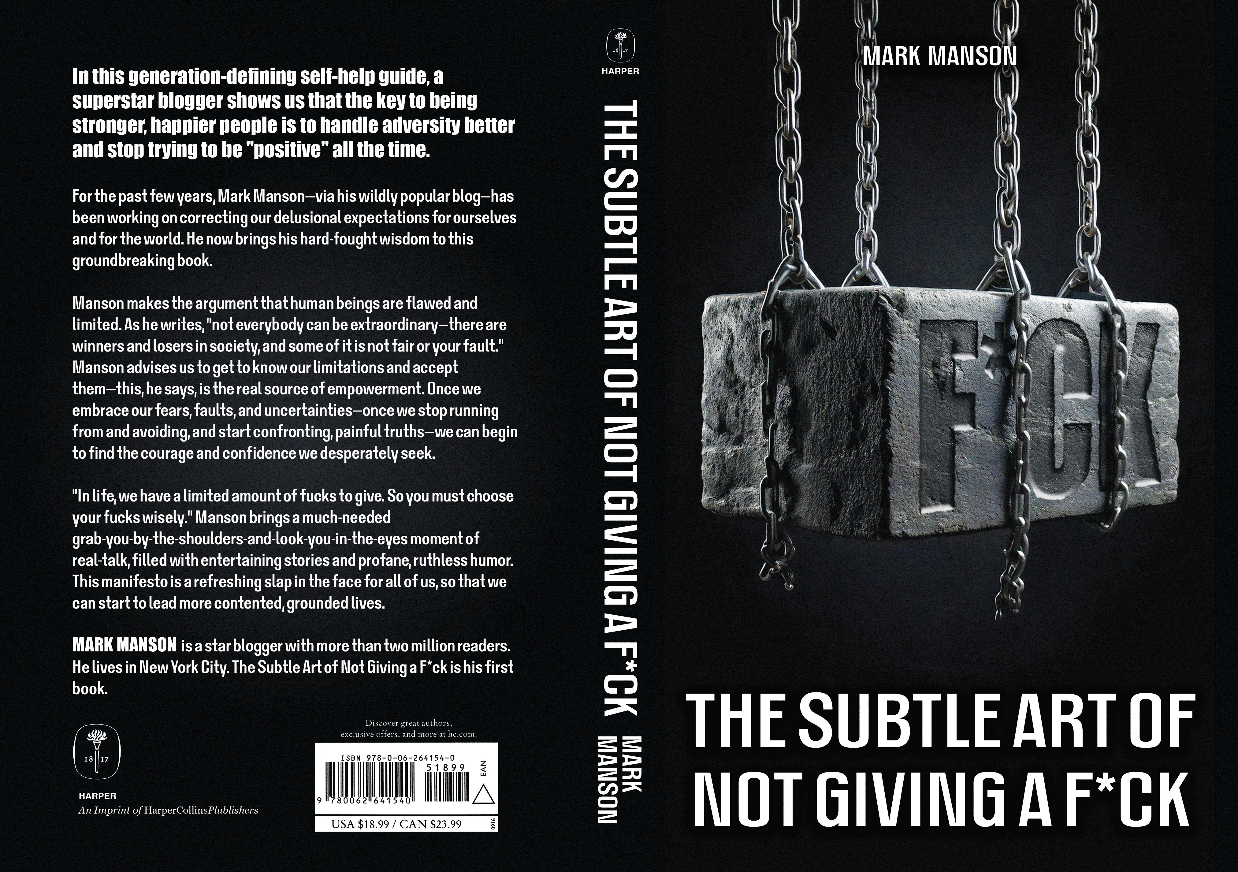 The original cover of The Subtle Art of Not Giving a F*ck relies heavily on bold typography and minimalism. While it's effective, I wanted to move beyond that and visually portray the book’s deeper themes. The challenge was to communicate emotional weight, confinement, and the burden of caring for everything through a single, striking image that feels symbolic yet instantly understandable.