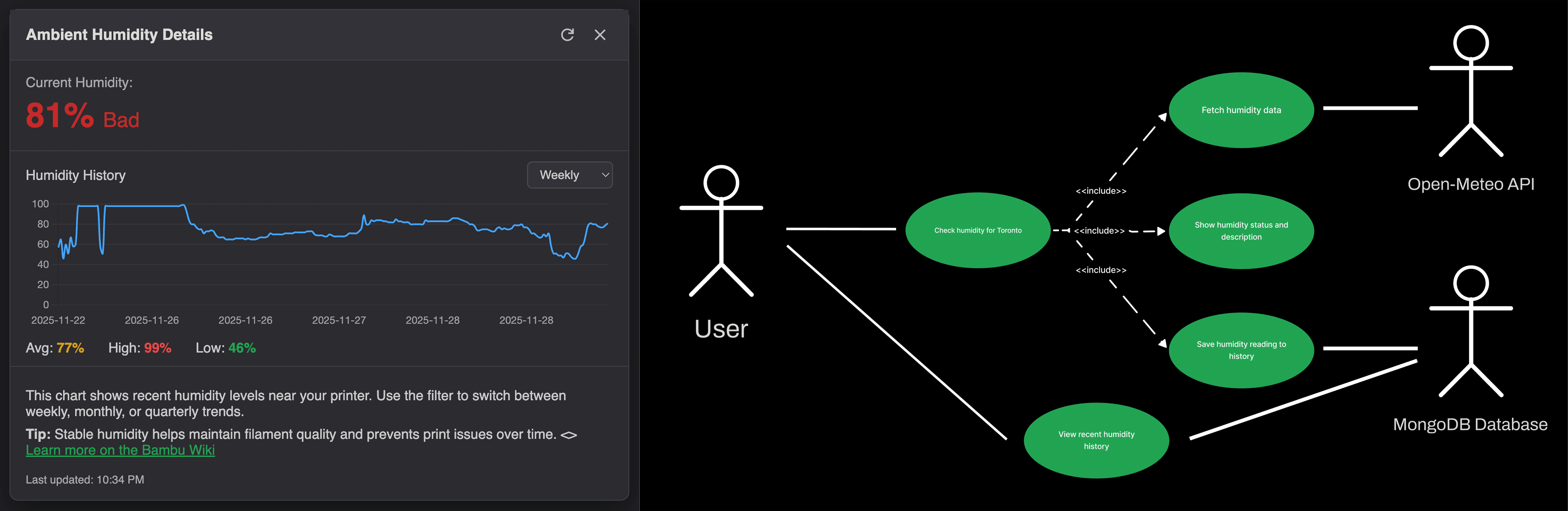 The Bambu Humidity Monitoring System now stands as a connected case study that demonstrates UI design, backend logic, and IoT integration working together as a unified experience.
